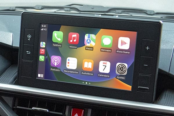 – Radio de 6” pulgadas con Car Play y Android Auto.